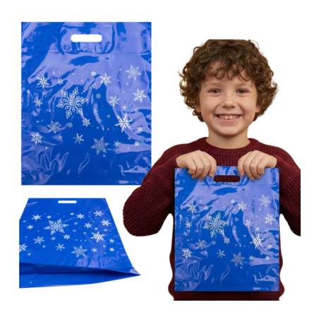 GRALA nabízí modrou vánoční reklamní tašku s potiskem "hvězdiček", s uchem (ledvinkou) dodatečně vyztuženým vložkou a s certifikátem PZH pro styk s potravinami.