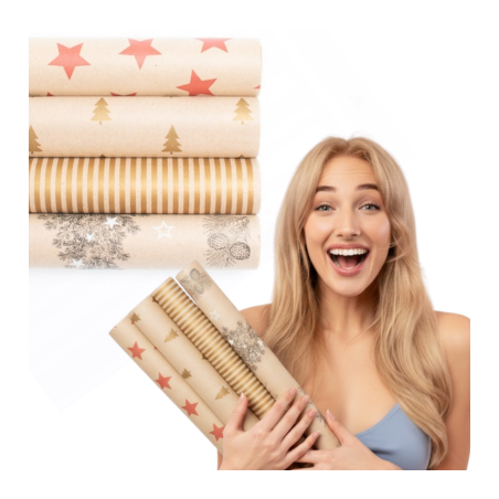 Die Packung enthält 4 Rollen mit Motiven, jede Rolle ist 70 cm breit und 200 cm lang. Eine Rolle reicht aus, um ein großes Geschenk oder mehrere mittelgroße Geschenke zu verpacken.